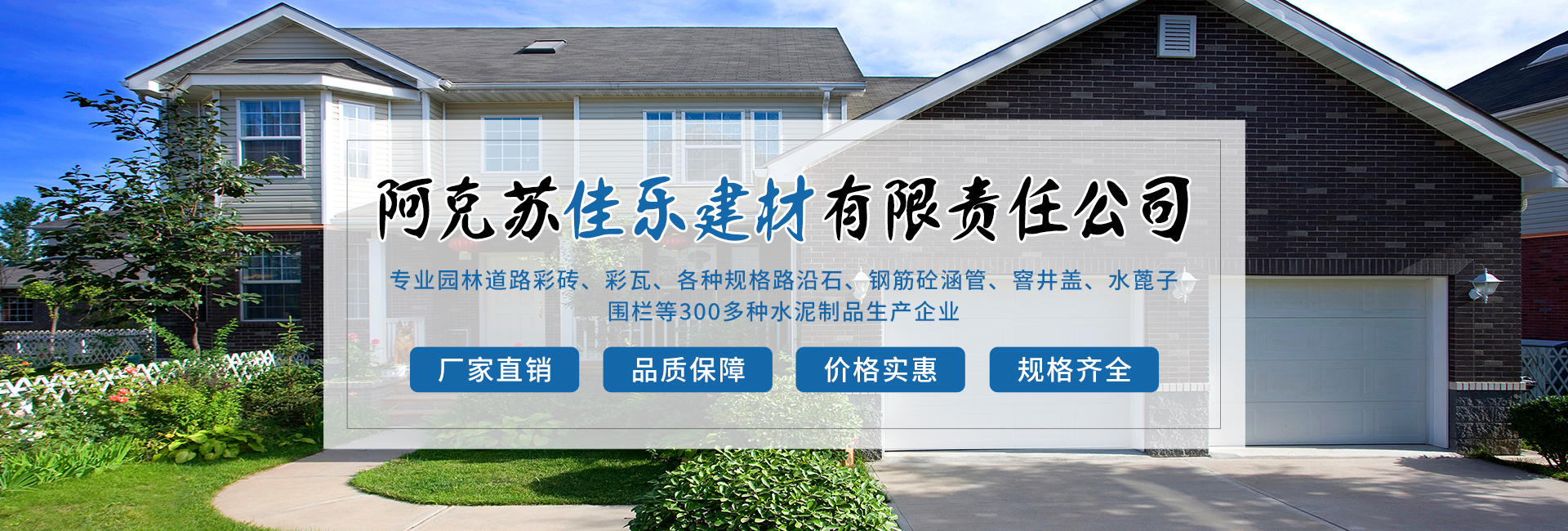 阿克蘇佳樂建材有限責任公司成立于2005年,是園林道路彩磚、彩瓦、各種規格路沿石、鋼筋砼涵管、窨井蓋、水蓖子、圍欄等300多種水泥制品生產企業。阿克蘇佳樂建材有限責任公司位于阿克蘇市塔南路13號(石油公司往南200米)?,F公司在阿克蘇市、阿瓦提縣、烏什縣、拜城縣、輪臺縣、焉耆縣等地有分廠十余個,為地方城鄉建設添磚加瓦。 多年來,公司致力于設備的更新,新產品的研制,用更科學更美觀的產品順應...
